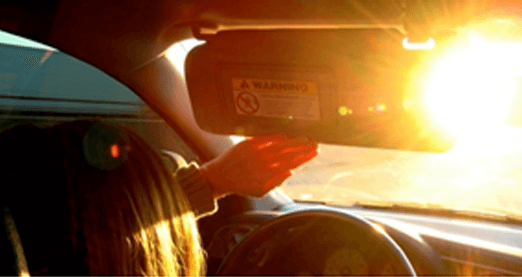 Egy amerikai kutatás szerint csaknem 20%-kal növekszik egy karambol kockázata tűző napfényben. Éjszaka sem sokkal jobb a helyzet: a folyamatosan szemből érkező, erős reflektorok állandó mozgásra kényszerítik a pupillát, ezért nagyon könnyen ki tudják fárasztani a szemet.